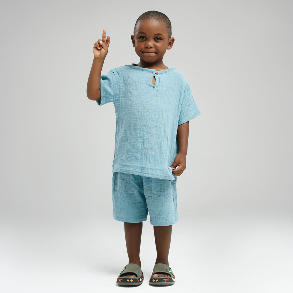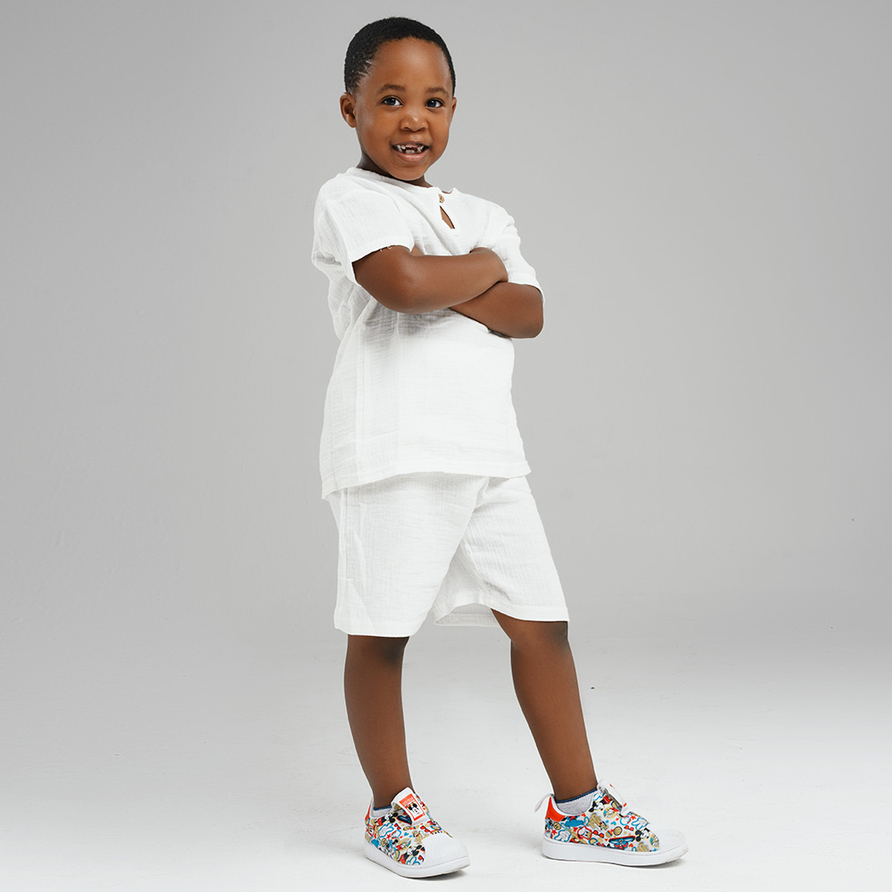Dress your little one in delightful comfort with this lovely light white Linen outfit! Perfect for sunny days, this two-piece set includes a short-sleeved top and matching shorts, creating a fresh and easygoing look. The breathable fabric is ideal for keeping toddlers cool and comfy.